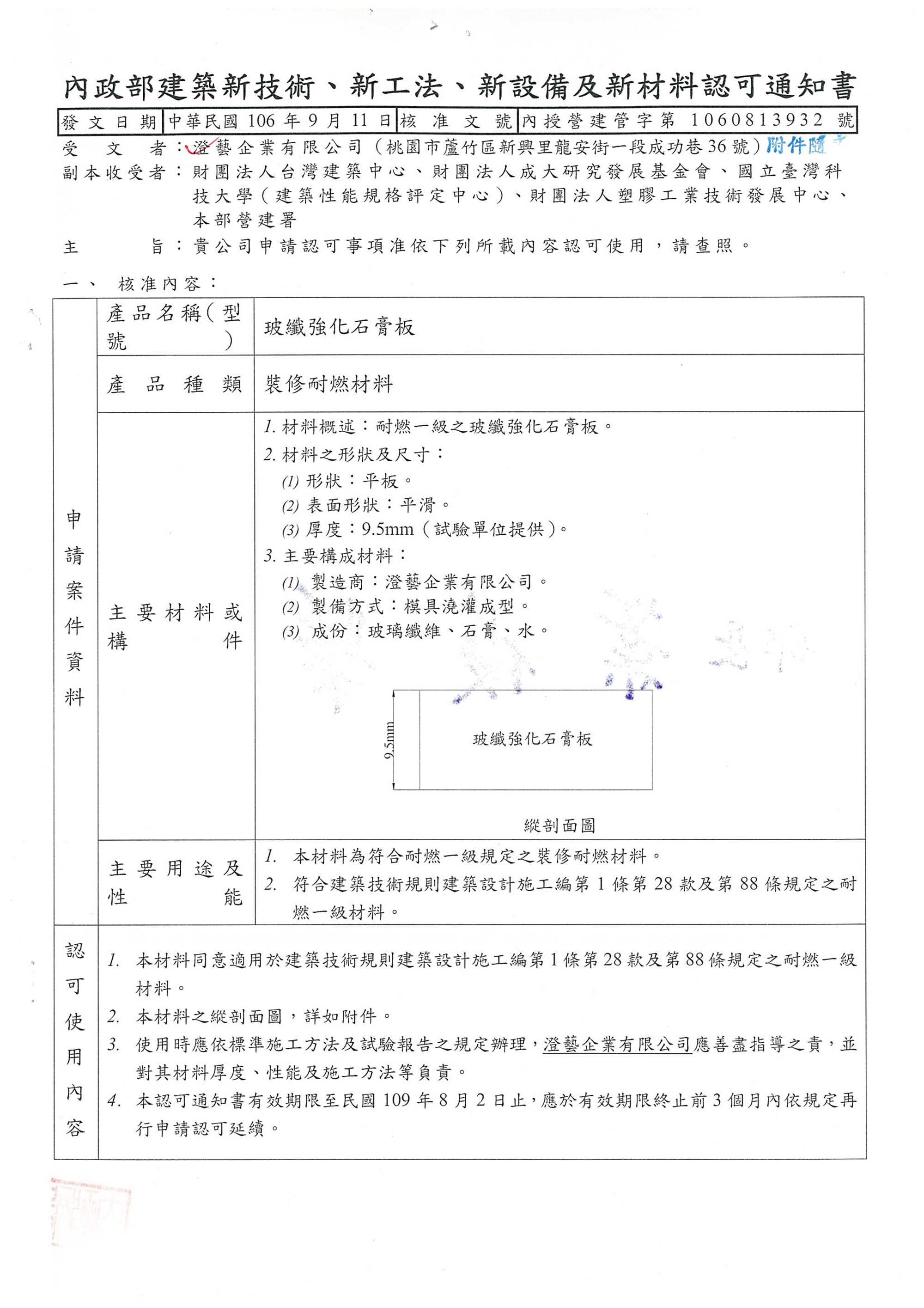 內政部核准 耐燃一級